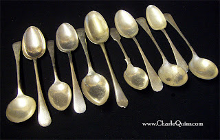 This buying and selling game, yes I call it a "game" although I do take it very seriously, is a bit like panning for gold or silver in this case. Last year I bought from an auction a box full of "silver cutlery", paid a little too much for it for my liking (auction fever strikes again) but figured that it should at least 'wipe its nose' once sold.